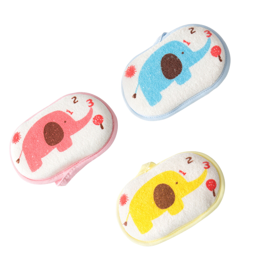 3 Pcs Elephant Bath Cotton Sponges for Kids Bathtub Newborn Baby