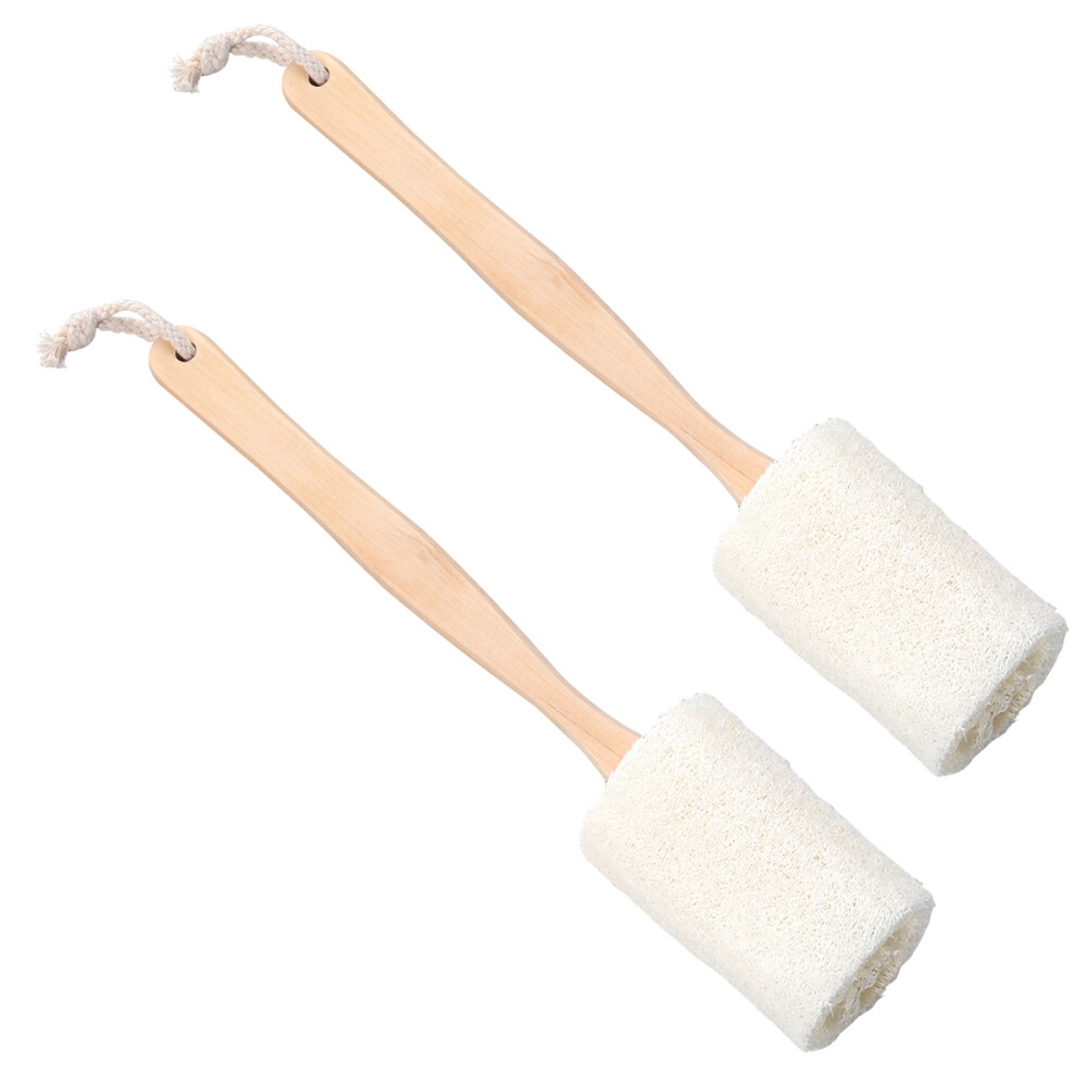 2PCS Long Wooden Handle Natural Exfoliating Loofah Back Sponge Scrubber Brush